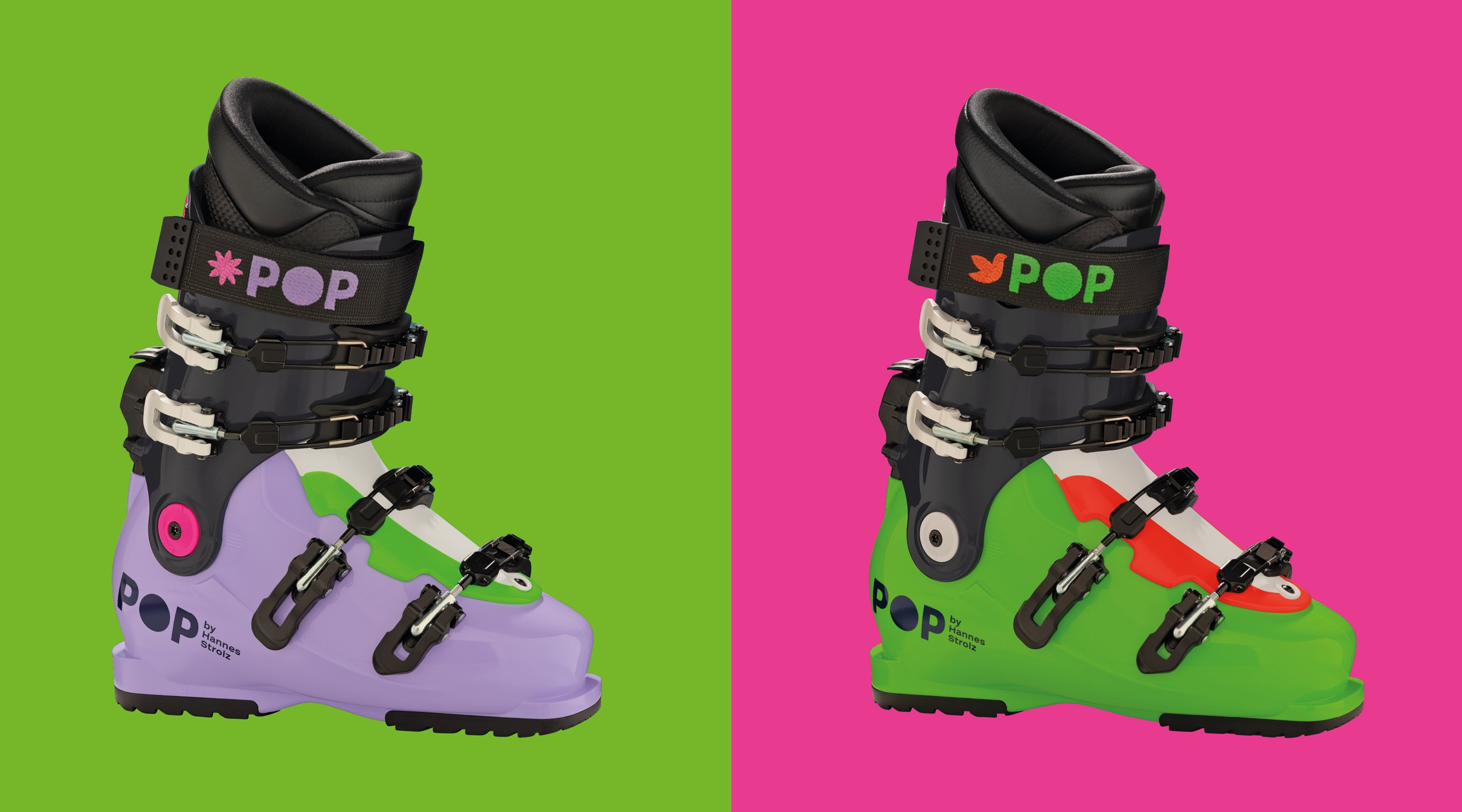 Kunst trifft Schnee: Frida und Pablo sind das neue Duo der 2021 lancierten Skischuhlinie POP. POP by Hannes Strolz verbindet auf einzigartige Weise Sport, Kultur und Handwerk.