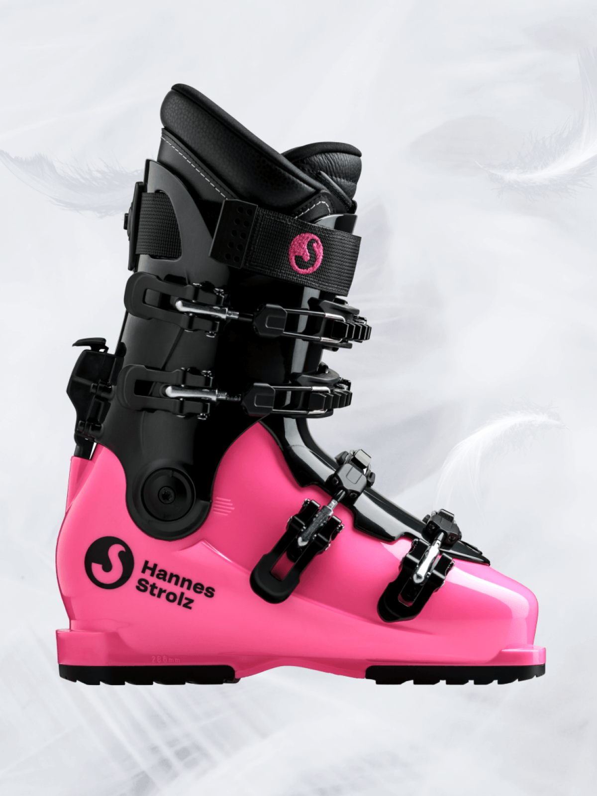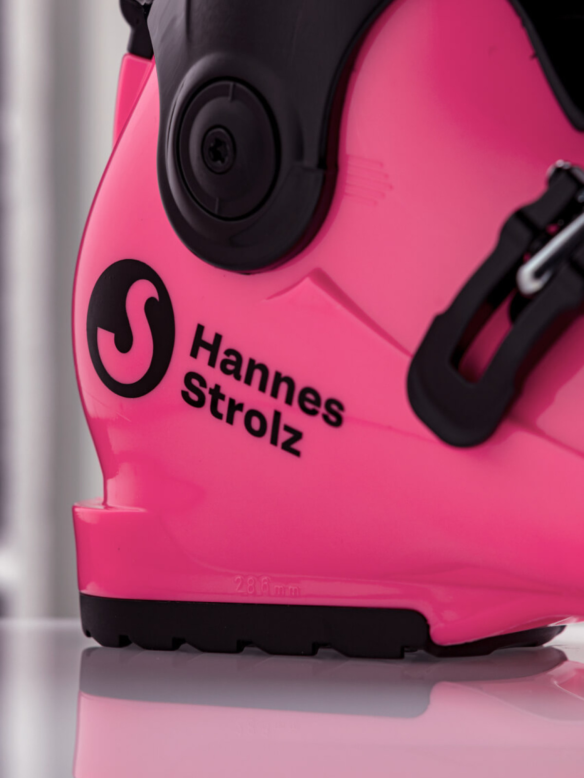 One of the designs has now been included in the official Hannes Strolz 2022/23 collection. As an unmissable eye-catcher on the slopes, the Evolution model in the colour combination pink/black attracted a lot of attention. The Evolution PINK will now be available at every Hannes Strolz dealer from next season on.